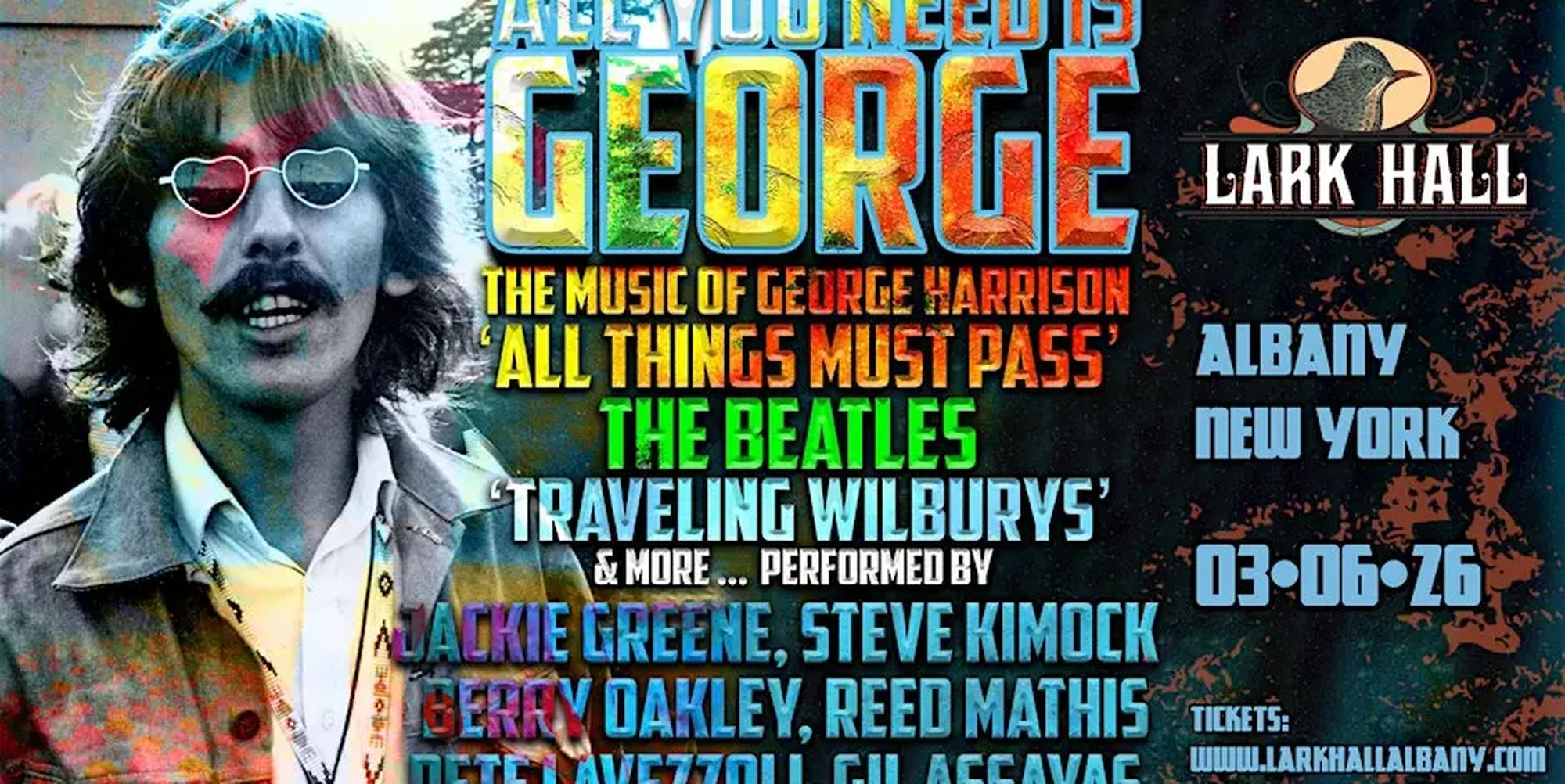 Join us for a once in a lifetime celebration of George Harrison feat. Jackie Greene, Steve Kimock, Berry Duane Oakley and more