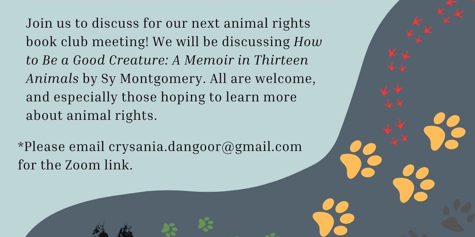 Join WMARA’s animal rights book club to discuss How to Be a Good Creature: A Memoir in Thirteen Animals by Sy Montgomery! All are welcome, especially those hoping to learn more about animal rights.