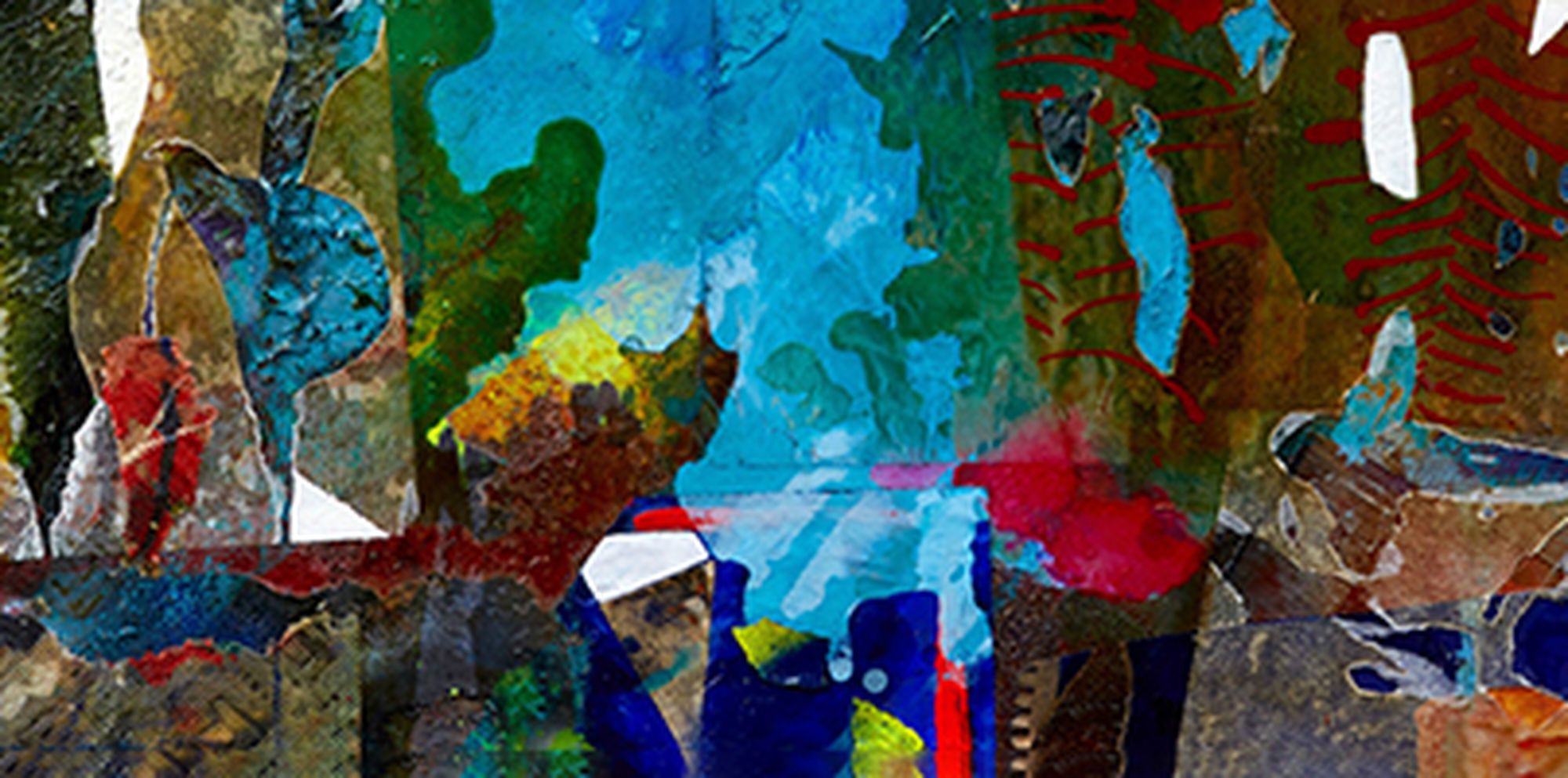 A self-described “die-hard abstract painter,” Ranee builds her paintings in layers of paint wash, shellac, spray paint, oil stick, and collage, creating luminous, tactile surfaces that record her movements and decisions over time. Everyday materials—postcard scraps, leaves, fragments of handwriting—become embedded within the work, transforming each piece into a kind of time capsule.