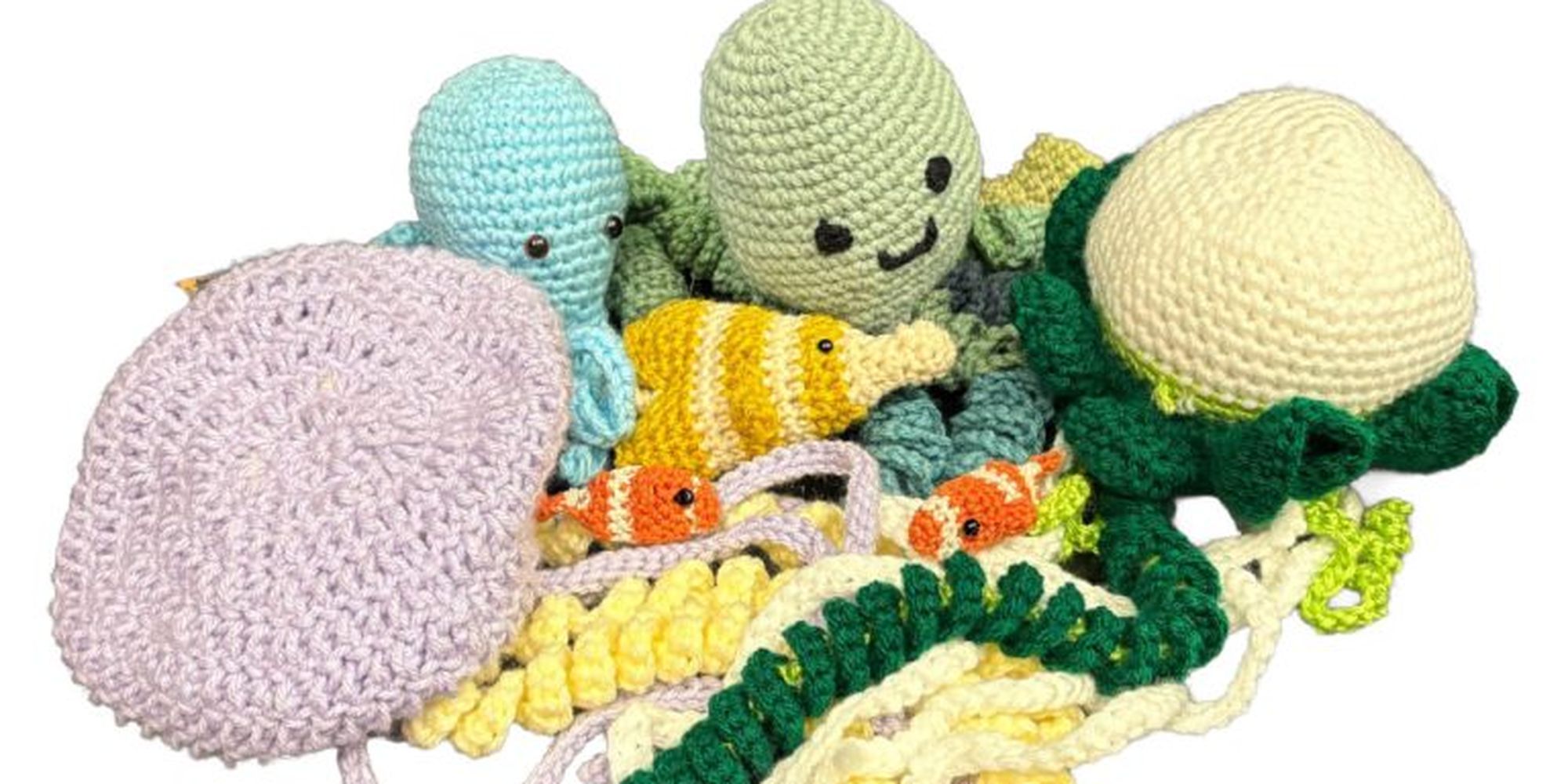 Join local artists David Lane and Molly Hess for a special workshop exploring the rhythms and movement of the Berkshires Satellite Reef’s crocheted coral undersea world. Emerging as part of the project have been numerous crocheted creatures which live among the reef — sea turtles, fish, rays, and sharks, to name a few! Together we will breathe life into these objects and explore how they might swim, scuttle, and glide — unlike their coral cousins, these animals are unbound by the ocean floor.