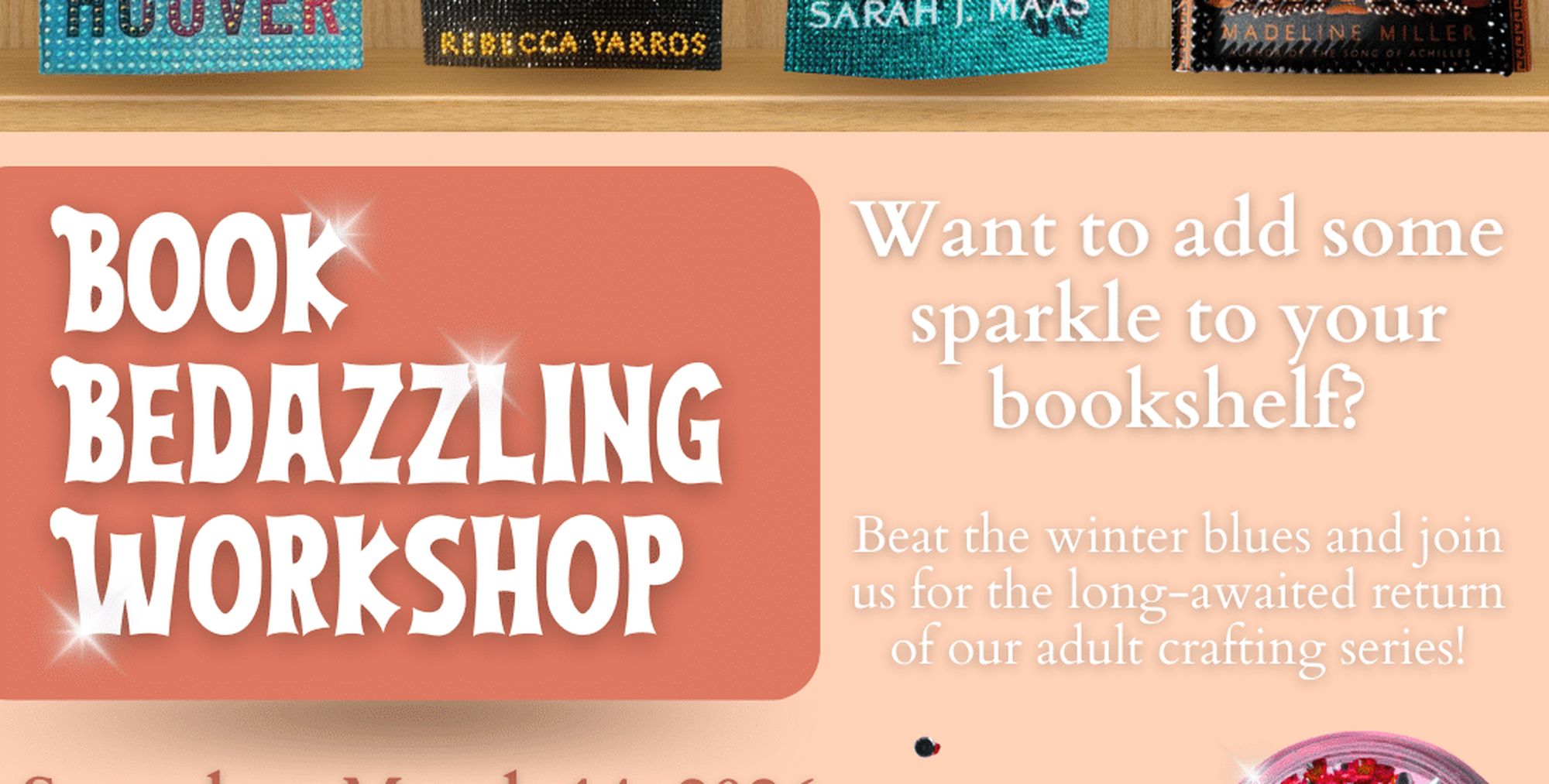 Join us for the long-awaited return of our adult craft events and learn to bedazzle books. Beat the winter blues and add some sparkle to a favorite book. We will have bedazzling supplies available for use during the event, participants need to supply their own book to work on.