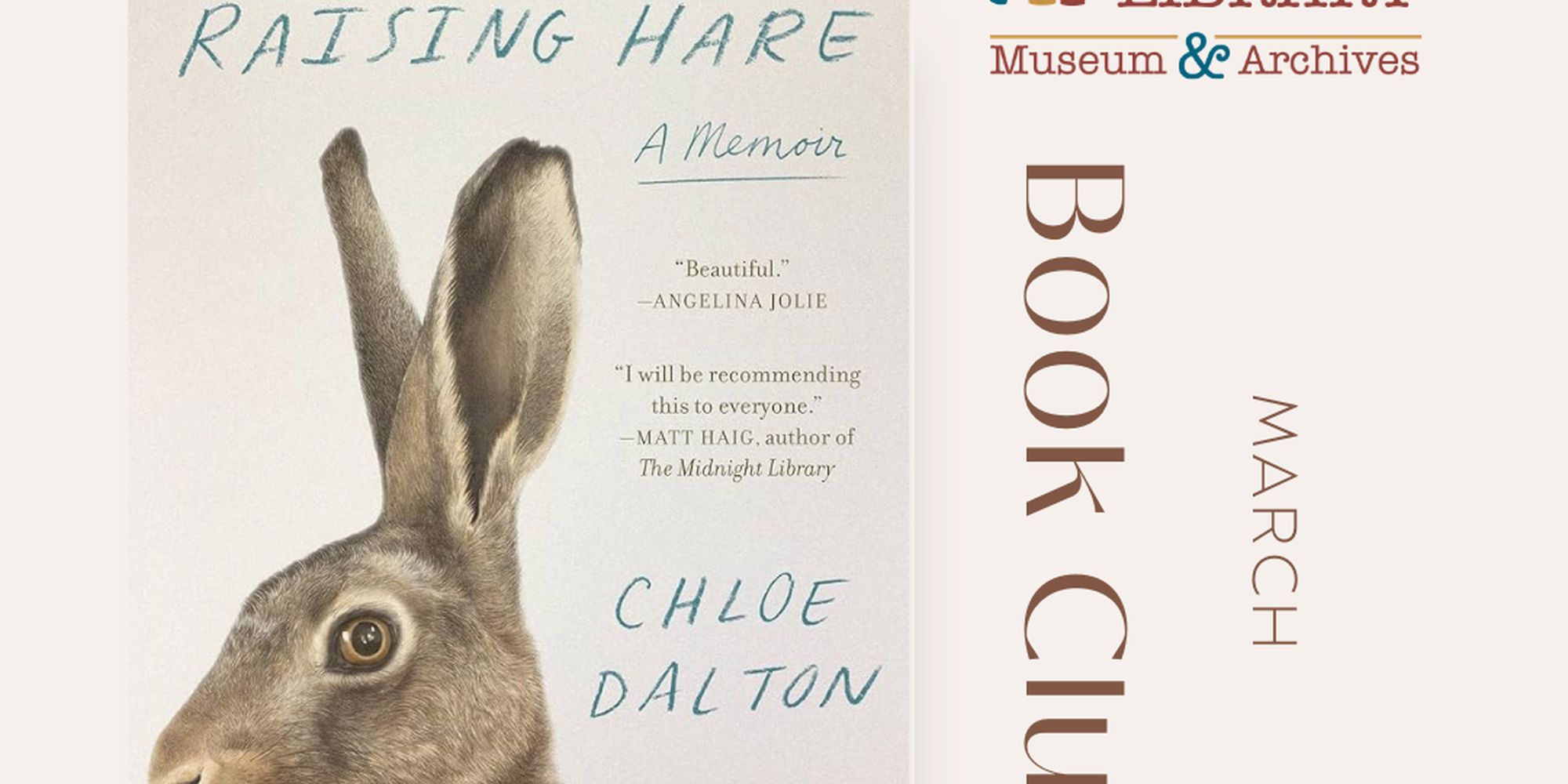 Join us Thursday, March 12 at 4:00pm for our next Book Club. We will be reading Raising Hare by Chloe Dalton.