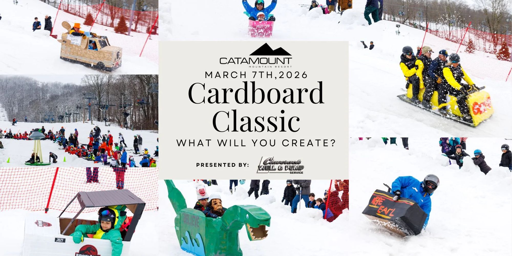 Catamount's fourth annual Cardboard Classic event is sure to be a blast! Let the creativity flow as you design a sled using only cardboard and tape. Will your sled be the fastest or will it sputter out on its run down the hill? Either way, there is lots of fun to be had at this free event and awards will be given out in multiple categories, including: