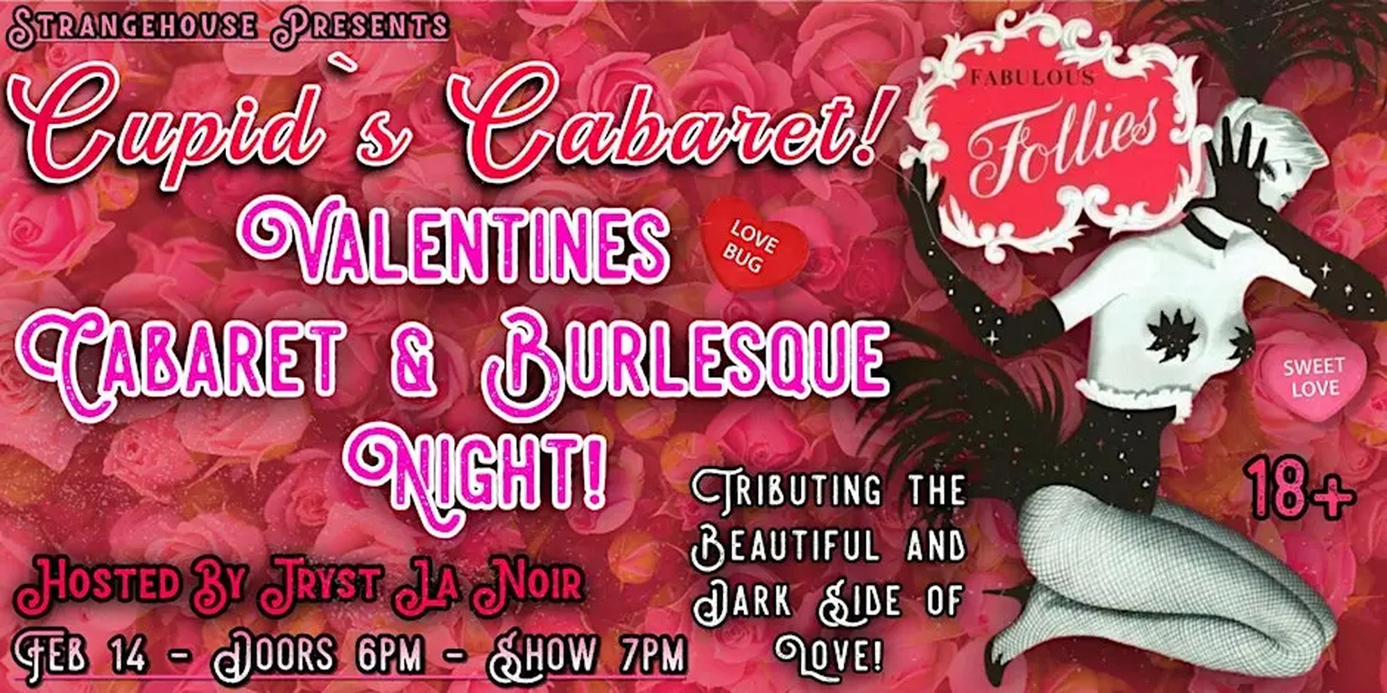 Celebrate Valentine’s Night with a bold, sensual evening of cabaret, burlesque, and variety performance at Cupid’s Cabaret — a night honoring both the beauty and the darker temptations of love!