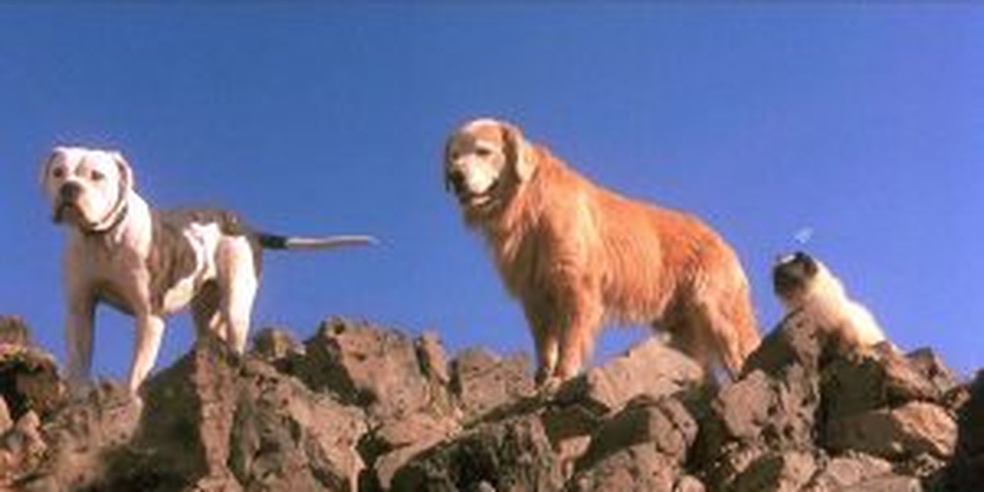 Three loyal pets cross mountains and rivers to find their way home.