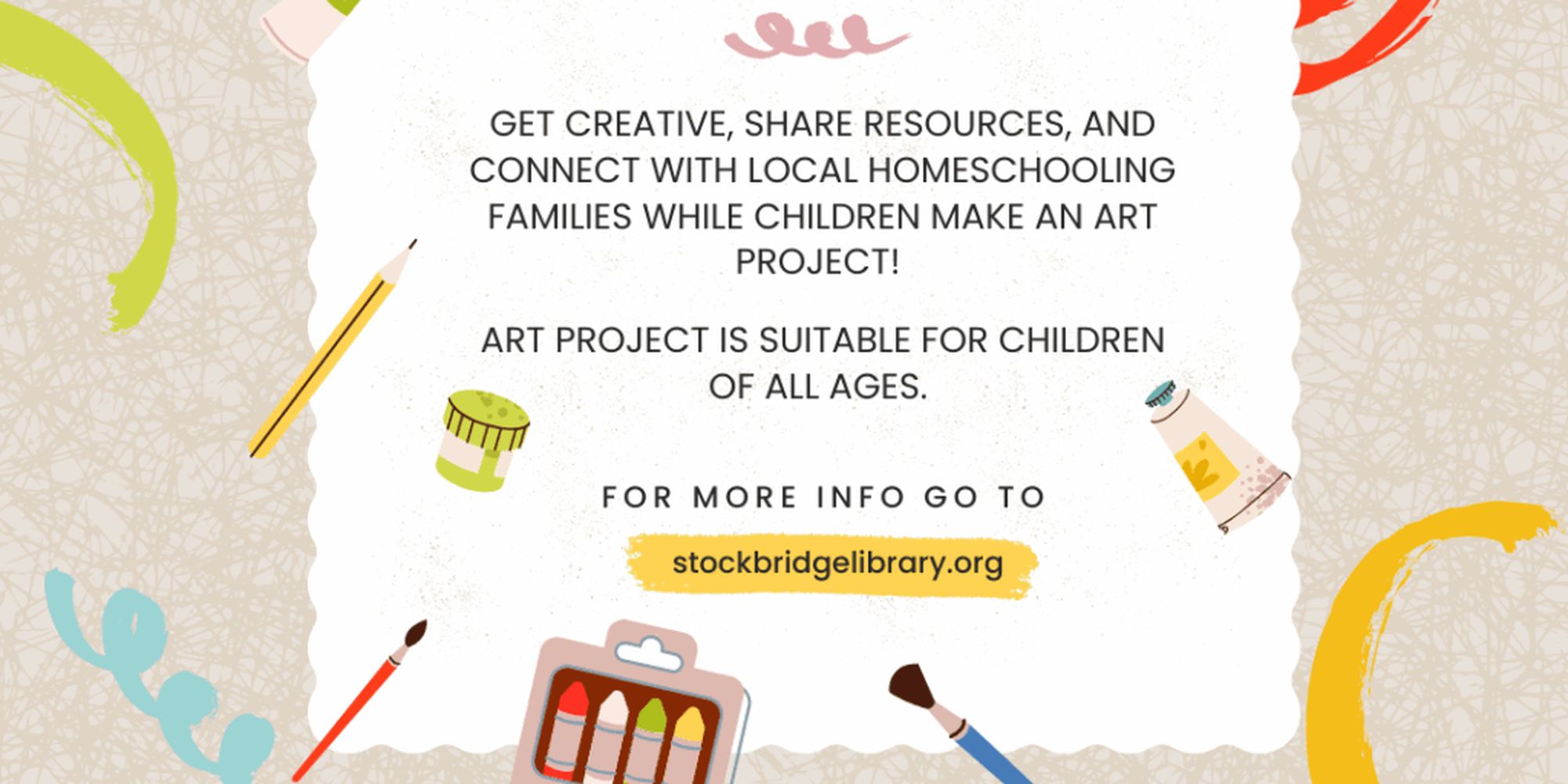 A creative and social space for homeschoolers of all ages! Held the 3rd Friday of every month. Each meeting will include an art project and the opportunity for homeschooling families to connect, get creative, and share resources with each other.