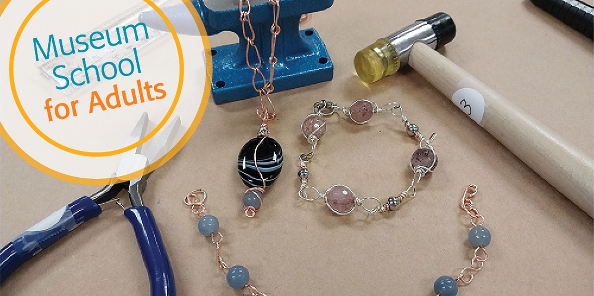 This workshop is designed to teach basic wire wrapping skills that will inspire your creativity! The instructor will bring examples of projects that build on basic skills. Make wire chains for bracelets or necklaces and create a pendant. You’ll discover: wire types and tools; semiprecious mineral beads; and headpins, earwires, and jump rings. Take home projects made using skills learned in class. This workshop is open to students with no experience (bring bifocals if you wear them). Tools are available to use in class. Materials included.