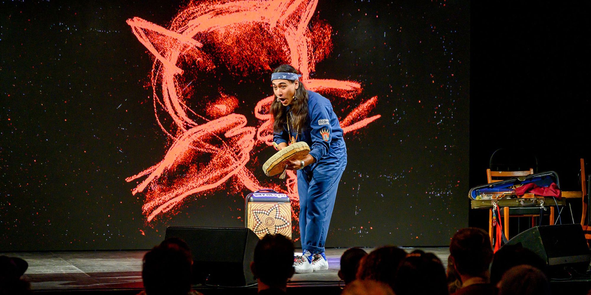 Across his genre-defying work, Julian Brave NoiseCat often turns to the narrative arts of his people who tell stories about mythic ancestors like the trickster Coyote to make sense of the world and themselves, cutting through colonial fictions while pushing the boundaries of nonfiction to illuminate vital truths. The “Coyote Story,” an artform once practiced by Indigenous peoples from Central America to Western Canada, is one of the oldest and most significant oral traditions in human history. In this one-man show, NoiseCat brings this dying art off the page and onto the stage through song, dance, and oratory.