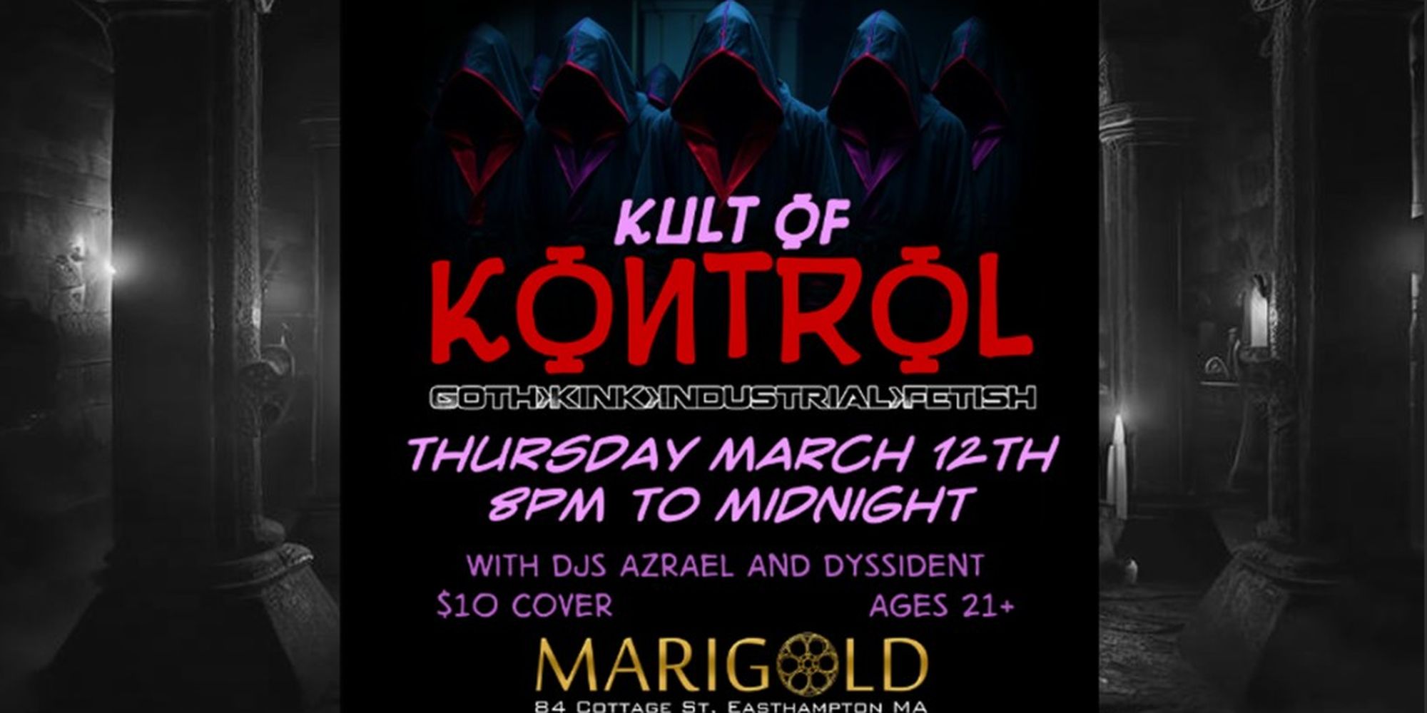 Join the Kult of Kontrol- bringing Kontrol Freaks together for another night of dark dance, decadent drinks, and delightful disciples. Let the sounds take you over as Azrael and Dyssident bring the music, soak in the potions and environment by Sam and the Marigold staff, and YOU brink the sexy.