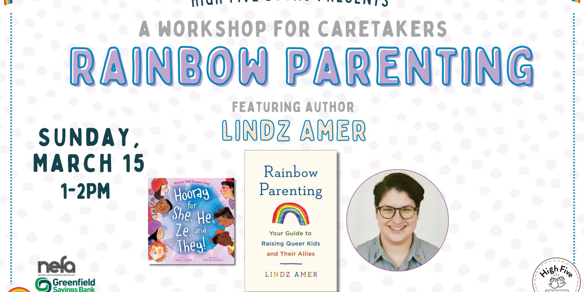 Join High Five Books and author Lindz Amer for a grownup presentation and chat about their adult nonfiction parenting book, RAINBOW PARENTING: YOUR GUIDE TO RAISING QUEER KIDS AND THEIR ALLIES. Families will learn about best practices for supporting their child(ren) and can engage with Lindz about their experience as a community leader in the LGBTQIA+ space. High Five Books will have copies of Lindz's parenting and picture books for sale and signing.
