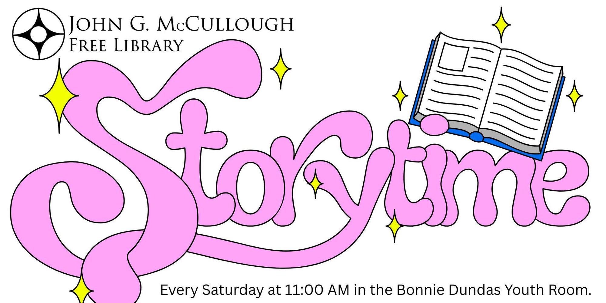 Preschoolers, families, and caregivers are invited to the McCullough Library's weekly storytime sessions. Every Saturday at 11:00 AM in the Bonnie Dundas Youth Room on the library's second floor. Join us for themed stories, songs, snacks, crafts, and good company.