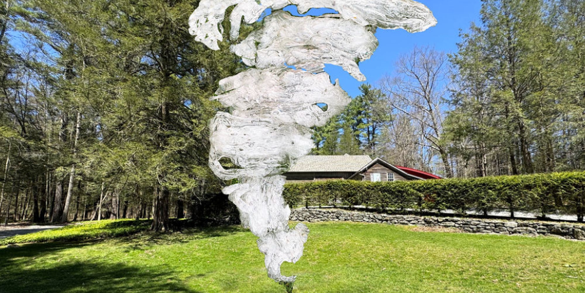 ‘Tornado’, a monumental glass piece installation for this summer’s Chesterwood exhibition. ‘Tornado’, will be the most recent public sculpture in this series Mother Nature is a series of sculptures about the effects of a warming planet on our environment. ‘Tornado’ will stand nine feet tall and five feet at the widest area, appearing dynamic and weightless, yet made up of 40 sections of cast atmospheric glass attached to a metal armature.