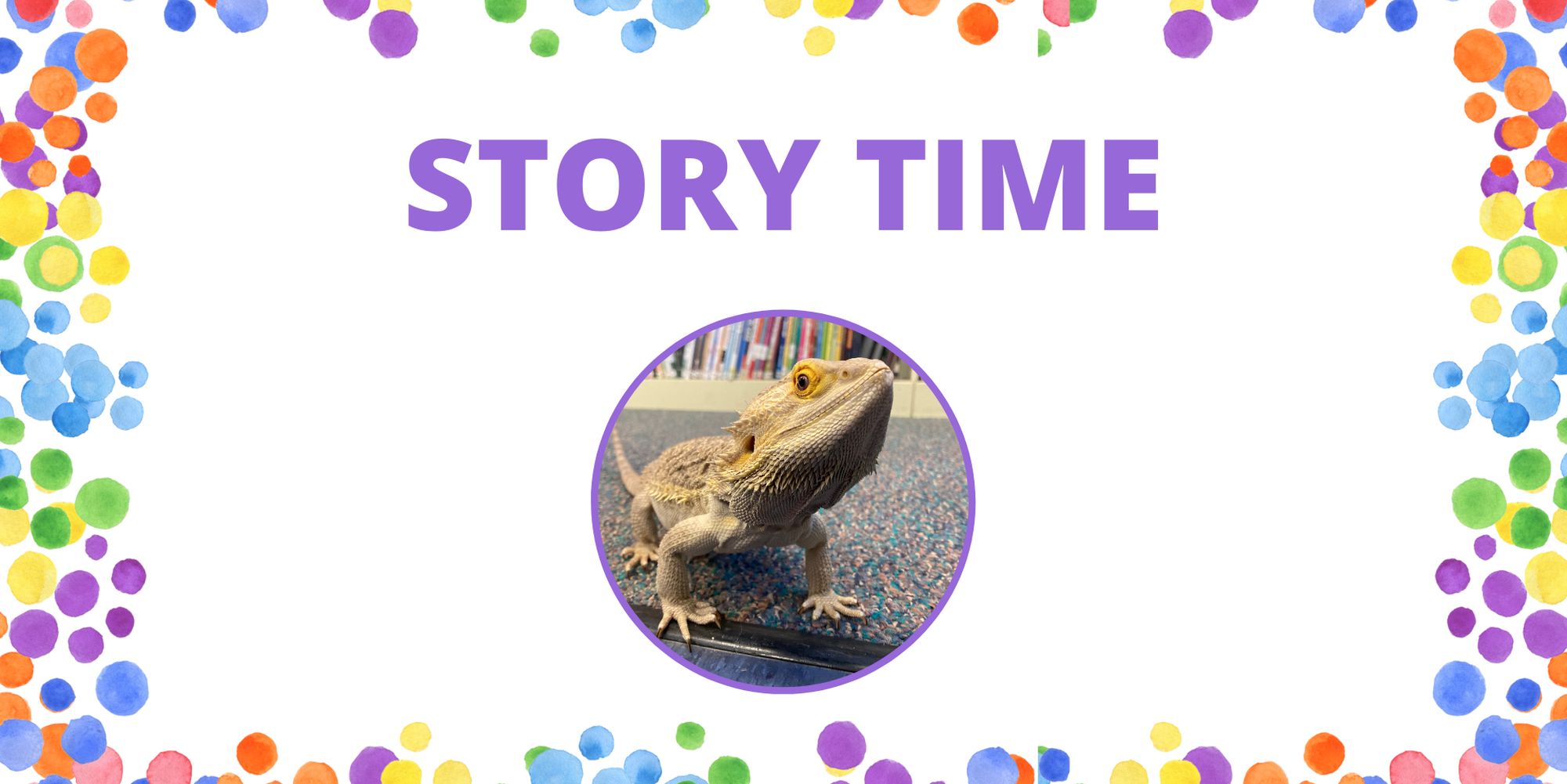 All ages & abilities welcome! Drop in the children’s room for a relaxed story hour, listen to books, play, make crafts, and visit our bearded dragon!