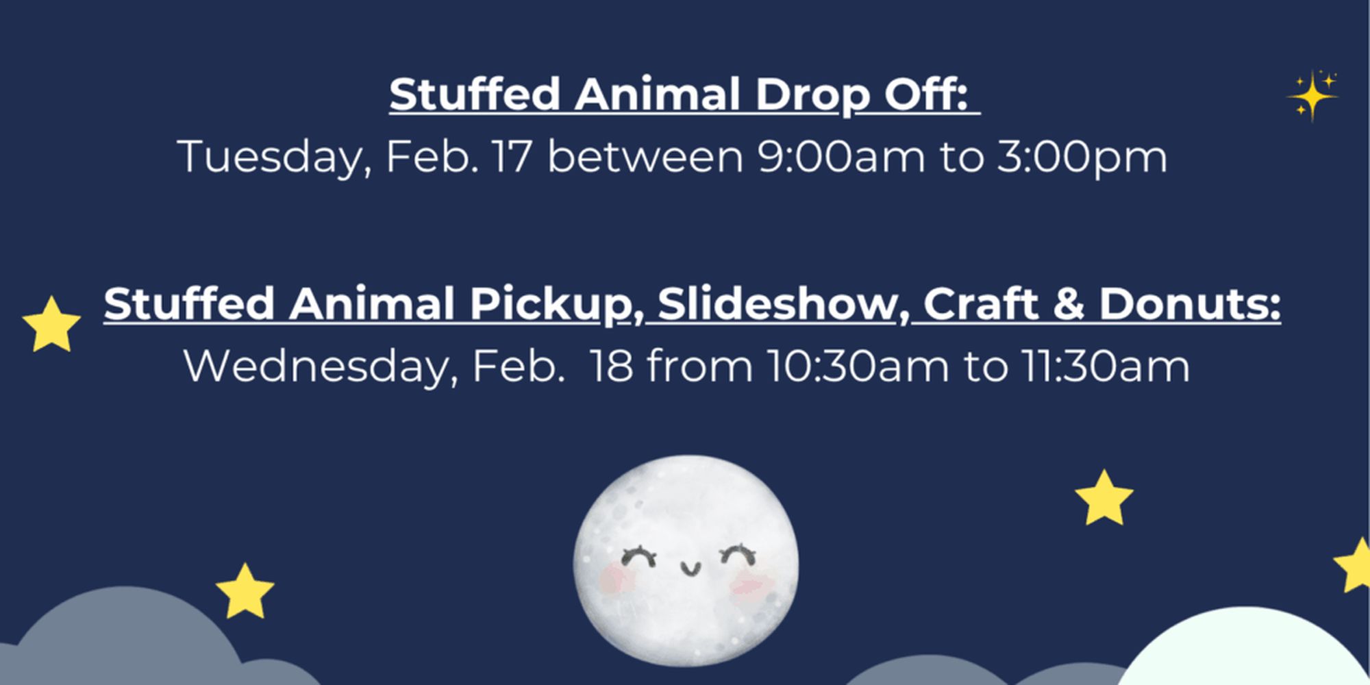 Children who dropped off their stuffed animal at the Stockbridge Library yesterday (2/17) can join us at 10:30am to pick up their stuffed animal, eat some donuts, make a craft, and watch a movie slideshow with photos of the adventures their stuffed animal went on overnight at the Stockbridge Library!