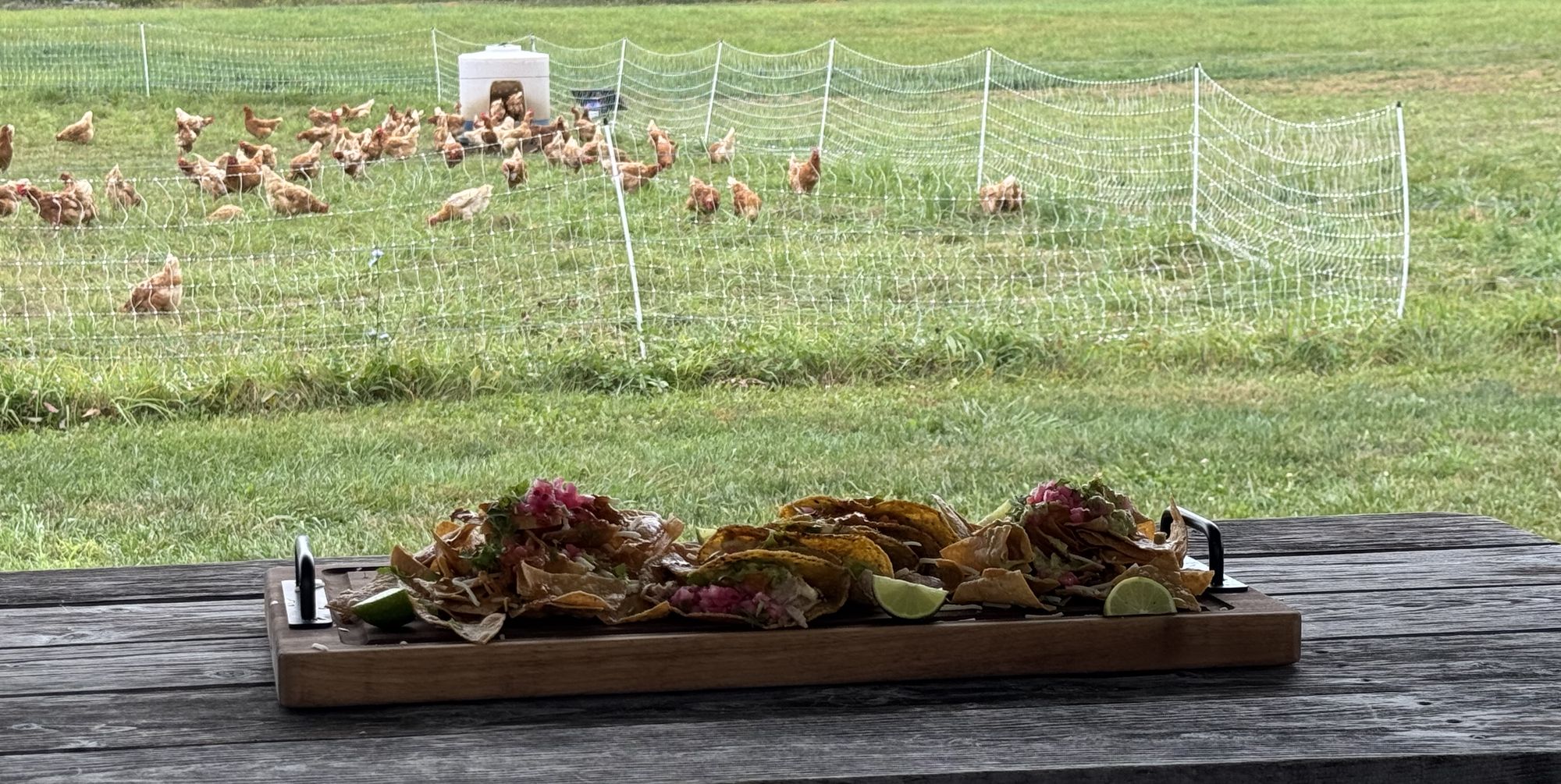 Each Tuesday, we add tacos to our regular menu. We have beef, chorizo, smoked chicken, and carnitas, plus we add a special taco each week. Then, you top those tacos with the many sauces our team excels at, including smoked red or green salsa, avocado cream, and pico de gallo. Finally, enjoy them as you take in the views of Baldwin Farm under the tent. Rain or shine, come out and enjoy farm-fresh tacos!