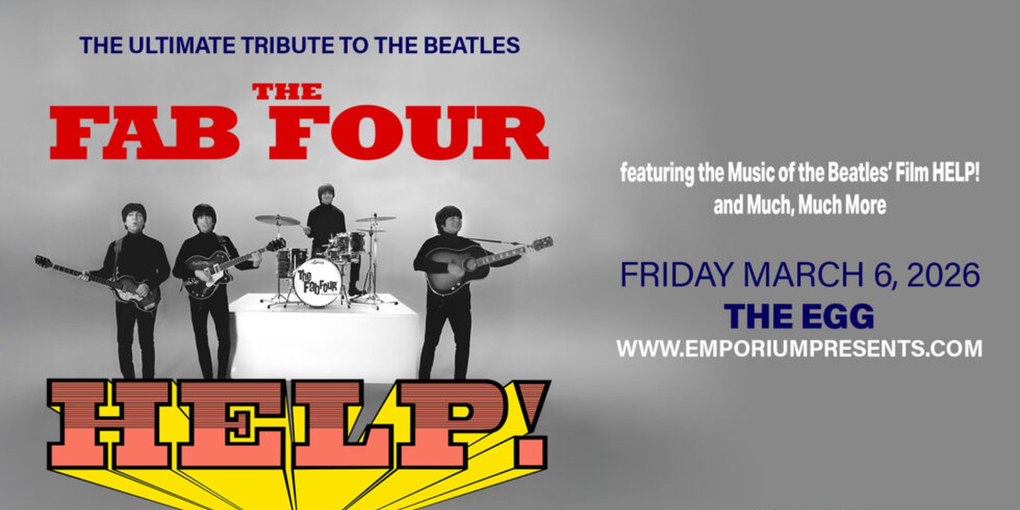 If you want to experience the best Beatles tribute ever, you won’t want to miss The Fab Four-The Ultimate Tribute. The 2025 tour brings their all-new show to the stage, celebrating The Beatles’ second film, HELP!, with performances from the movie soundtrack, as well as the Beatles’ greatest hits of every era.