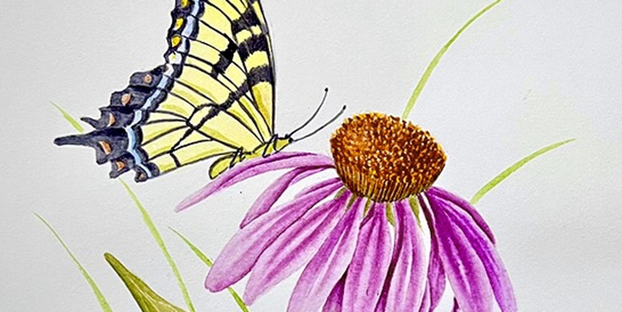 September at Hollister House Garden is glorious and the pollinators are busy at work! Venture with us into the garden to observe plants and their pollinators, followed by a fun watercolor lesson in the barn. Watercolorist Betsy Rogers-Knox with show you how to capture the rich colors of purple echinacea paired with its pollinator, the swallowtail butterfly. Students may use a traceable template or create their own sketch using a provided photograph. You will learn to layer washes of color with step-by-step demos and personalized instruction. All skill levels welcome.
