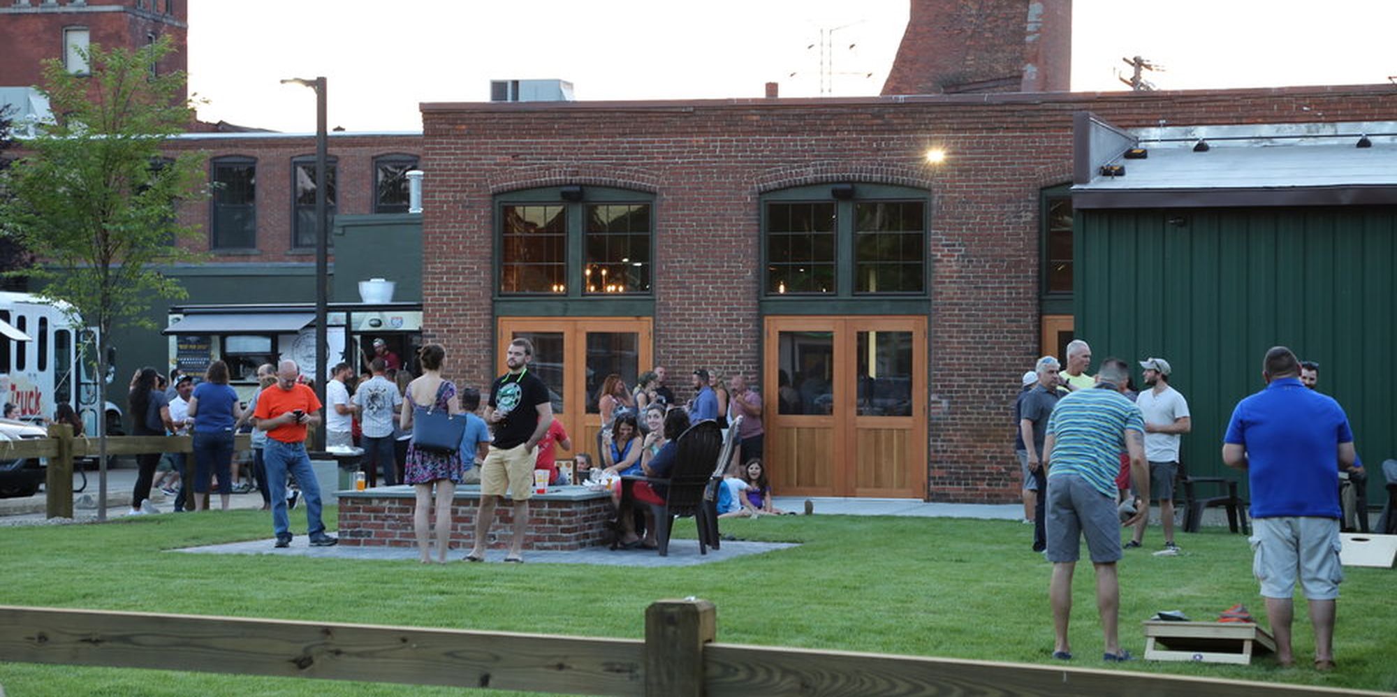 Visit BAD SONS in Derby, CT! Our Taproom features a massive bar with our fresh beers, as well as wine and cider on tap, a Growler Station for beers to-go, an up-close full view of our brewery, an outdoor yard and fire pit, and plenty of free parking. Foosball, shuffle board and free board games in our taproom. Dew Drop Inn delivers food on Wednesdays and Roseland Pizza delivers on Thursdays, we have various food trucks on other nights and the weekends, live-music on Sundays, and always high-grade BAD SONS swag available for purchase. Check us, check us out!